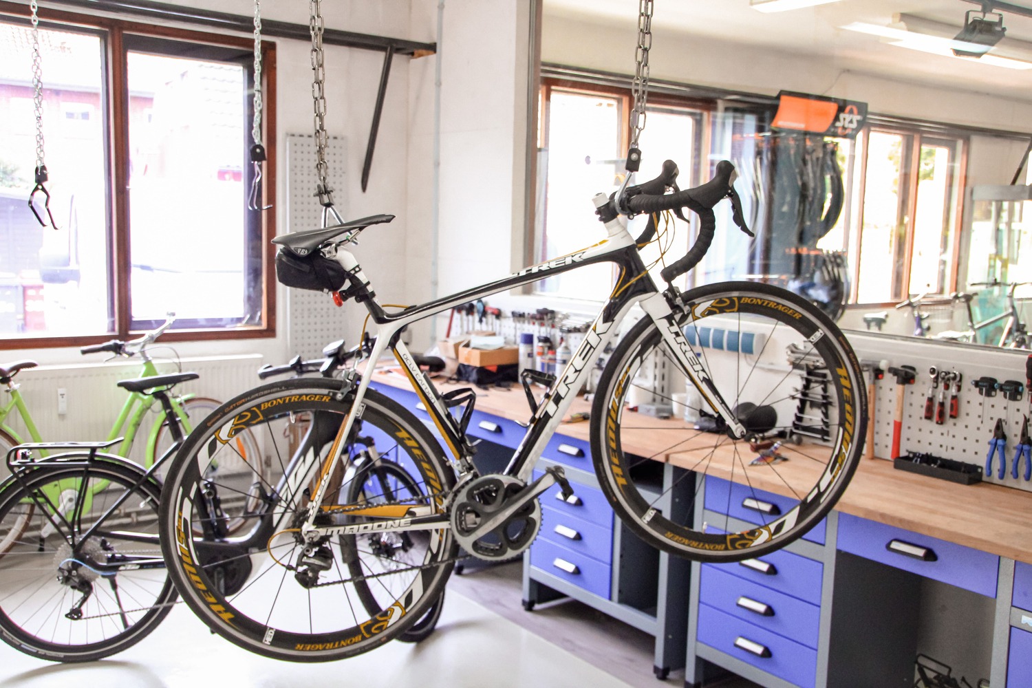 In unserer hauseigenen Werkstatt bringen wir Ihr Fahrrad wieder auf Vordermann und kümmern uns um jegliche Reparatur. Profitieren Sie von unserer Inspektion in den Wintermonaten (von November bis Februar), um Ihr Fahrrad für die warme Jahreszeit vorzubereiten.