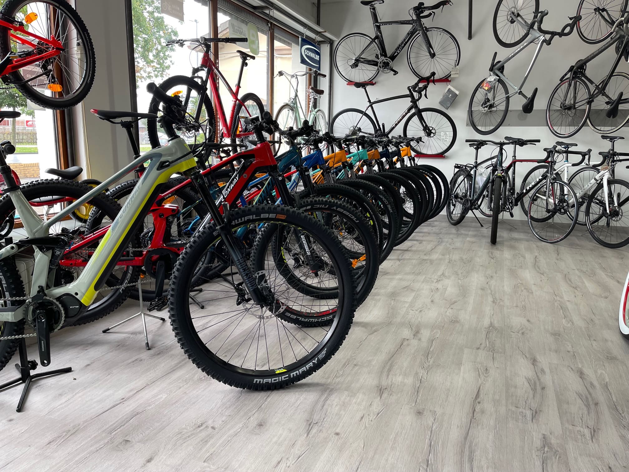 In unserem Geschäft verkaufen wir unter anderem City- und Trekkingräder, E-Bikes (Pedelecs), Kinderfahrräder, Hollandräder, Retroräder, Mountainbikes, Renn- u. Crossräder.